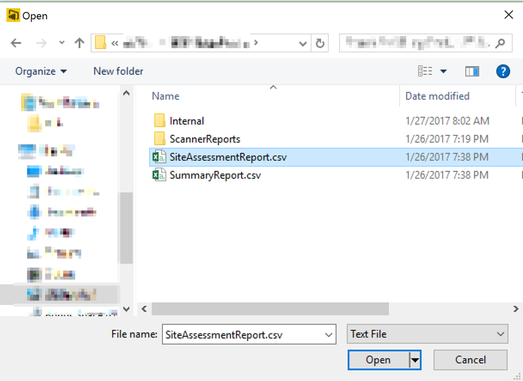 Navigate to the folder where the SMAT output files are located. In this walkthrough use the SiteAssessmentReport.csv file.
