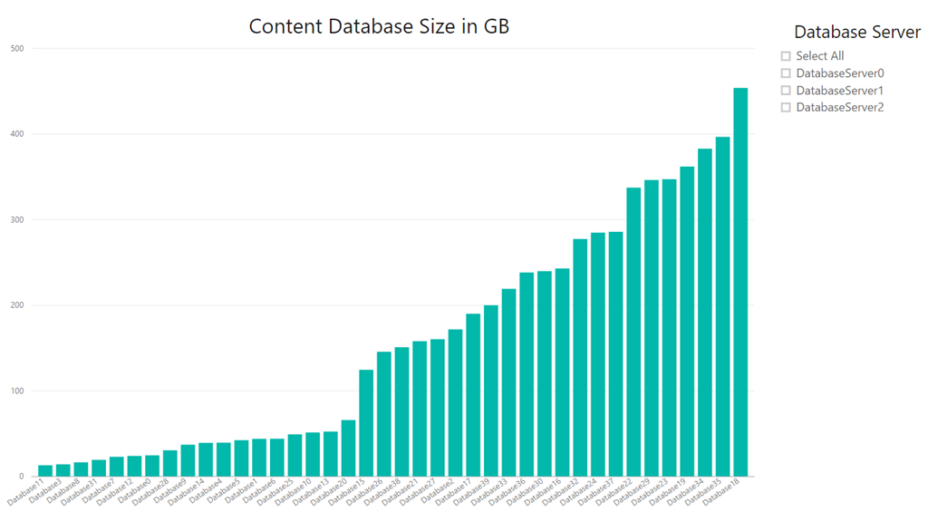 The DatabaseMetrics query result will contain only a single record per content databases with the associated server name and database size.
