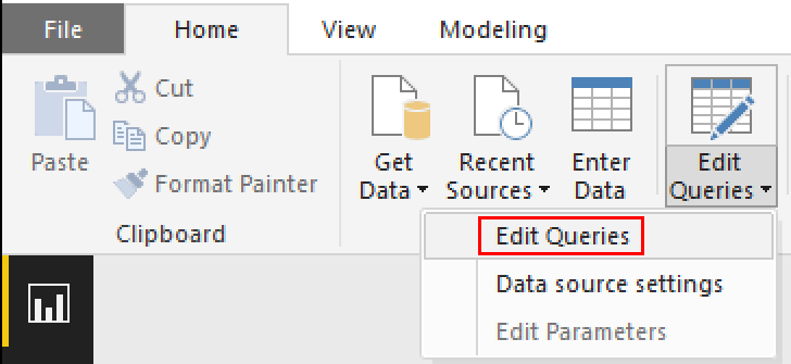 After the data has been loaded from previous step click on Edit Queries from the ribbon menu.